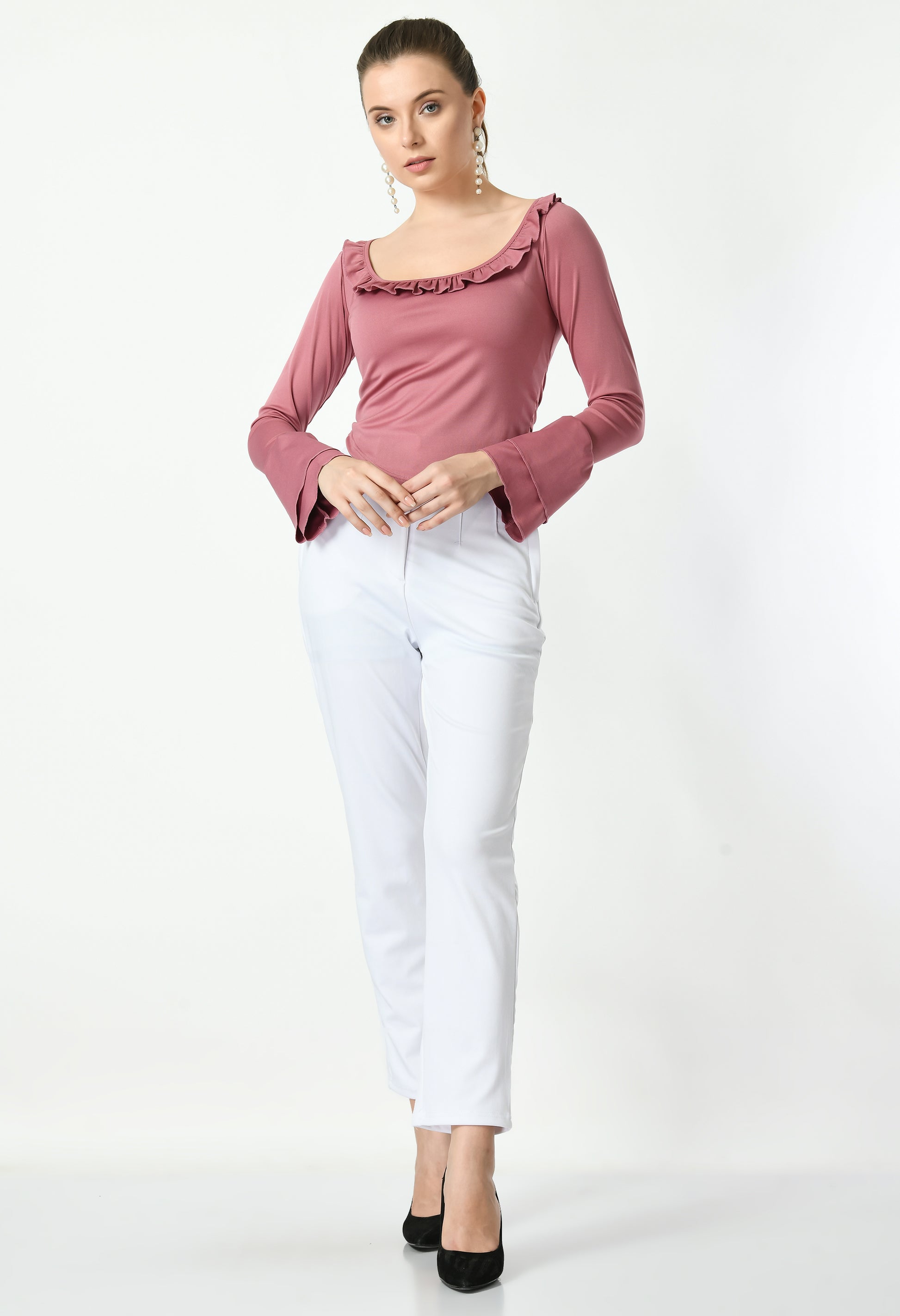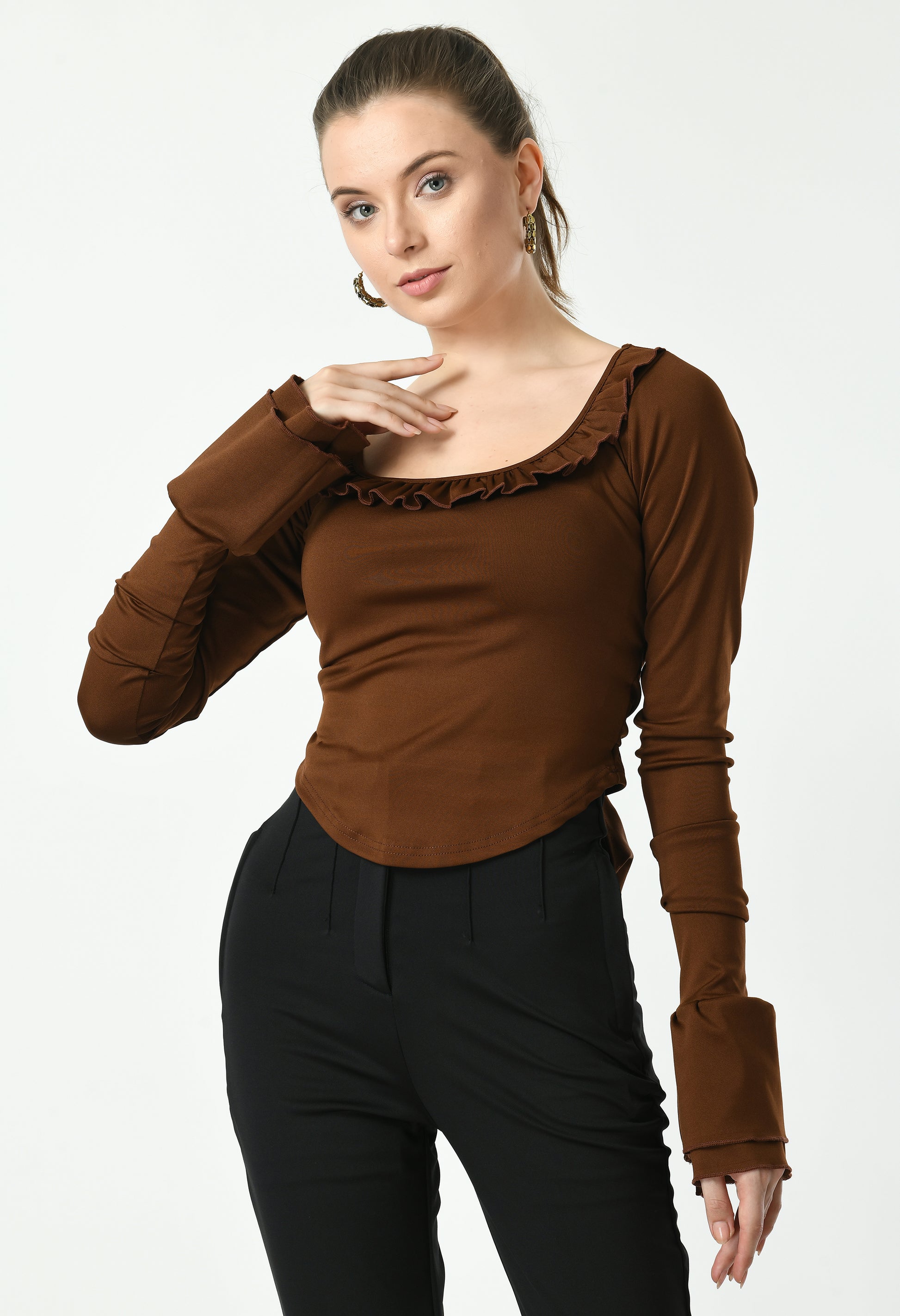 Womens Stylished Neck Frill Crop Top